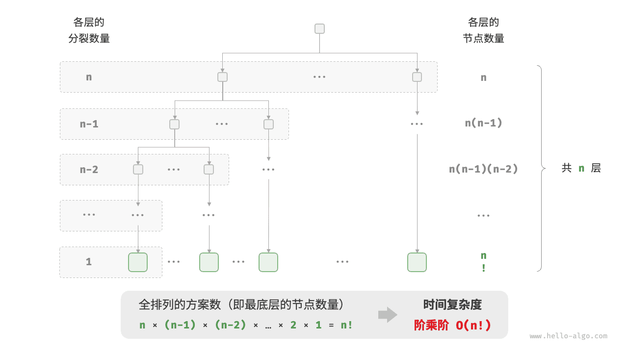 B中的打印操作需要循环 \(n\) 次,算法运行时间随着 \(n\) 增大呈线性增长。此算法的时间复杂度被称为“线性阶”。 - 算法