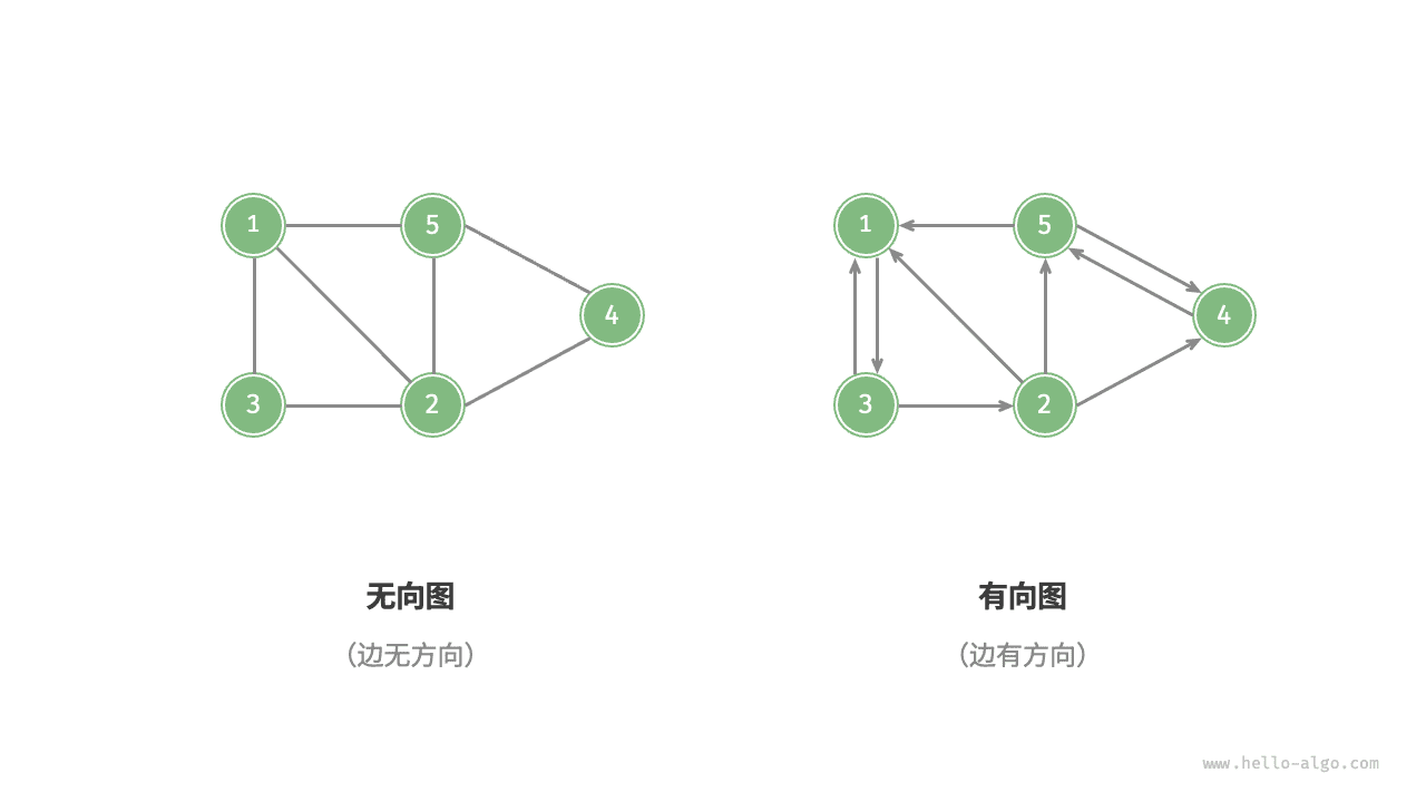根据边是否具有方向,可分为无向图(undirected graph)和有向图(directed graph),如图 9-2 所示。