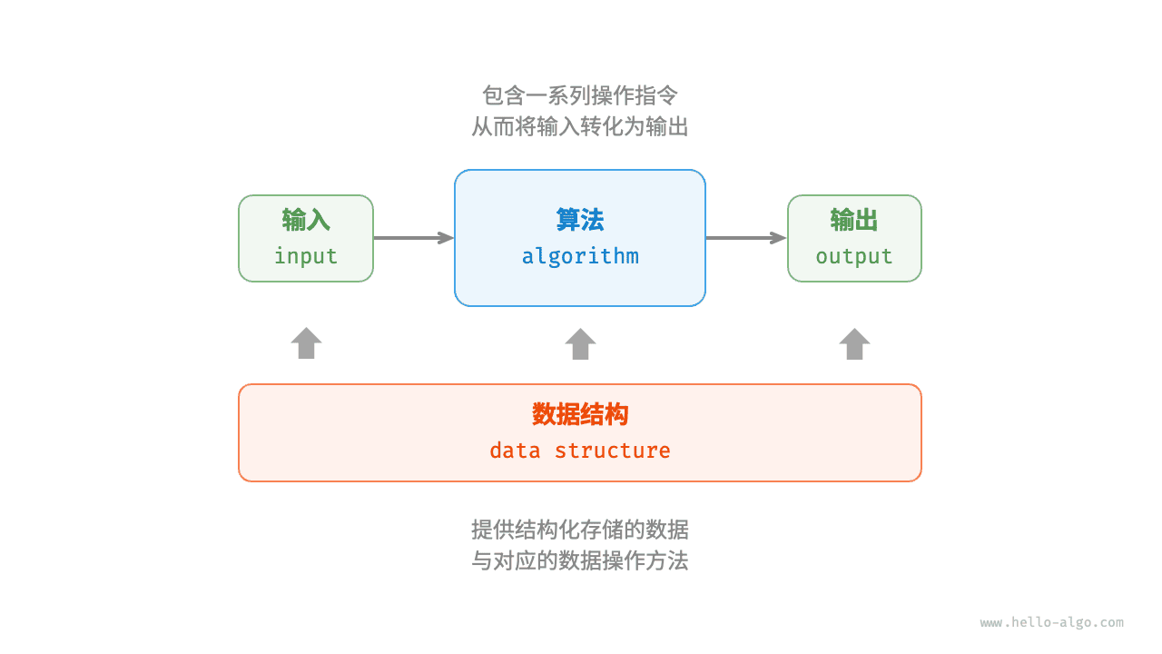 - 算法为数据结构注入生命力。数据结构本身仅存储数据信息,结合算法才能解决特定问题。