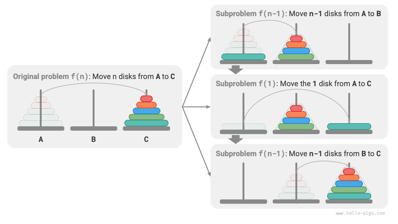 Figure 12-14 Divide and conquer strategy for solving the hanota problem