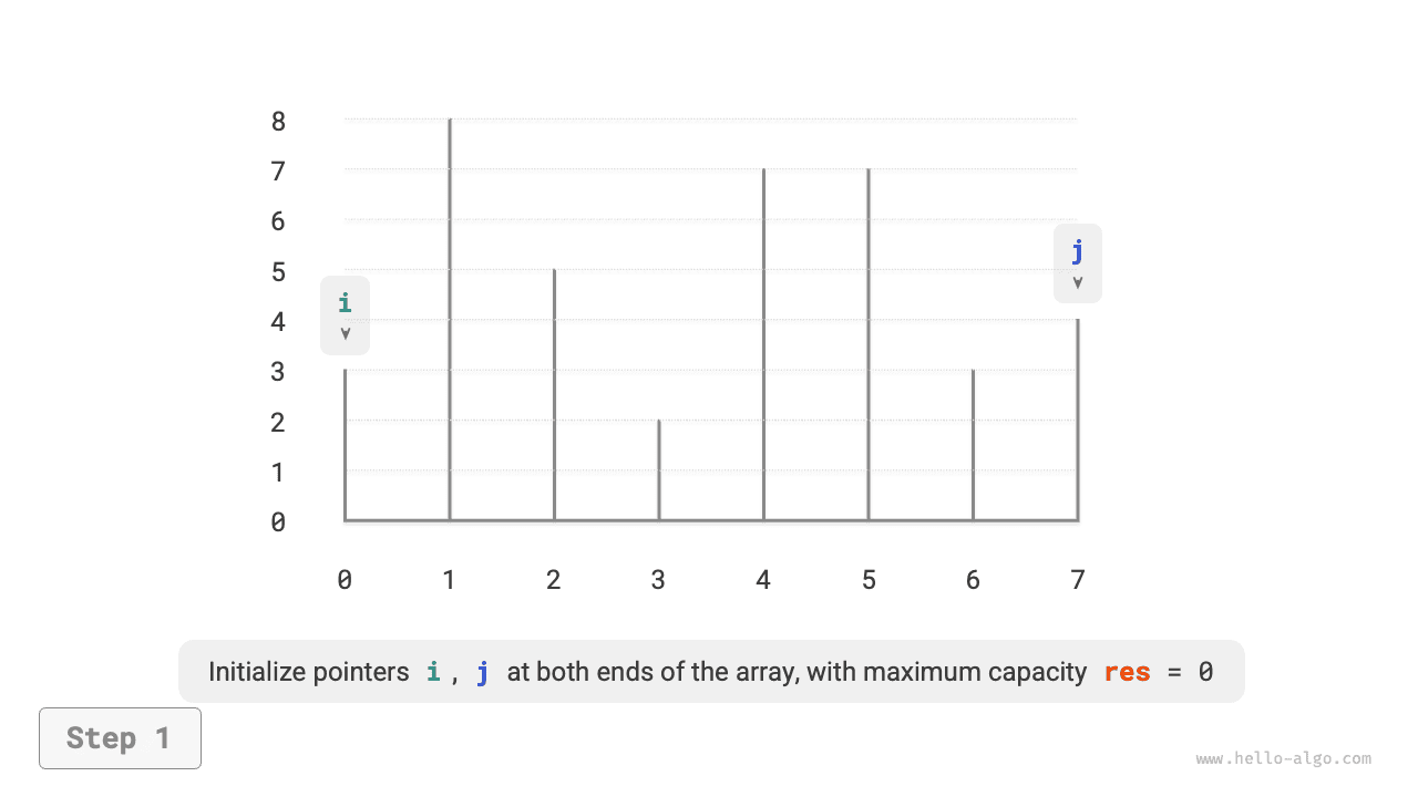 - In the initial state, pointers \(i\) and \(j\) are at both ends of the array.