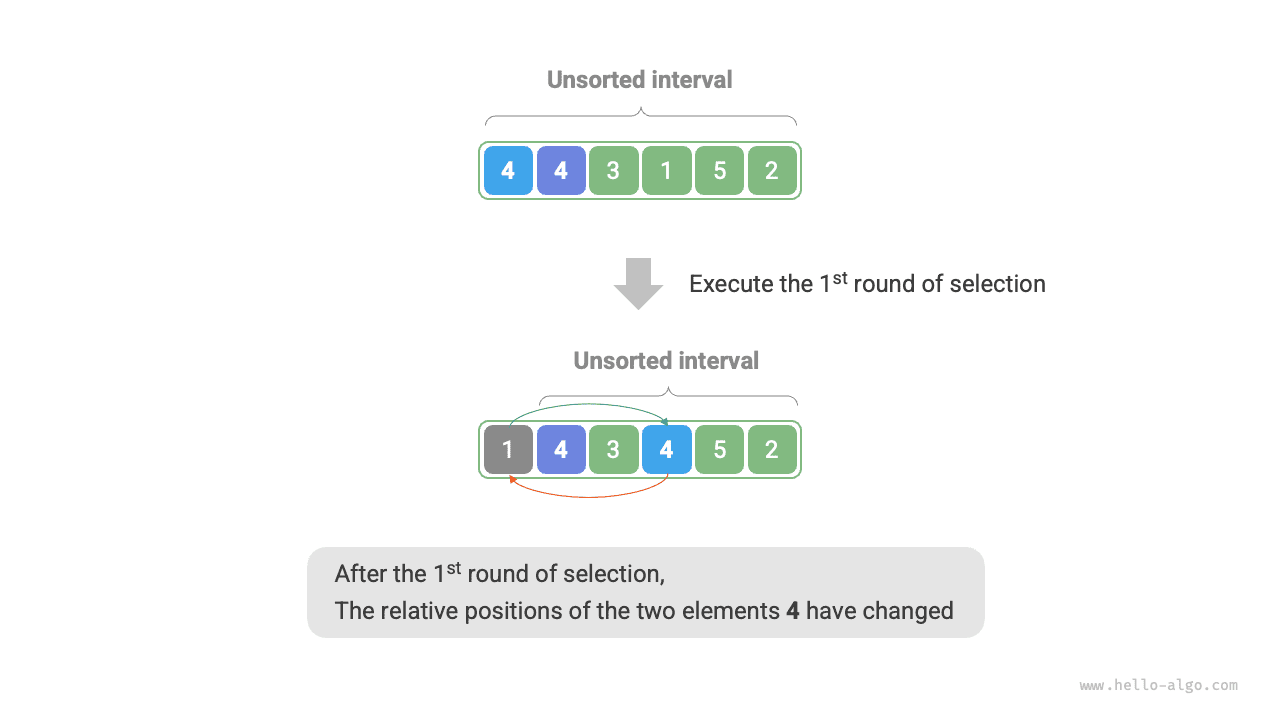 - Non-stable sorting: As shown in Figure 11-3, element