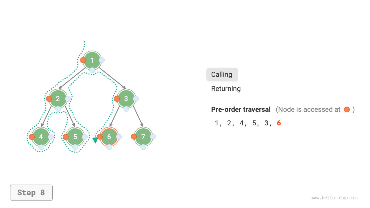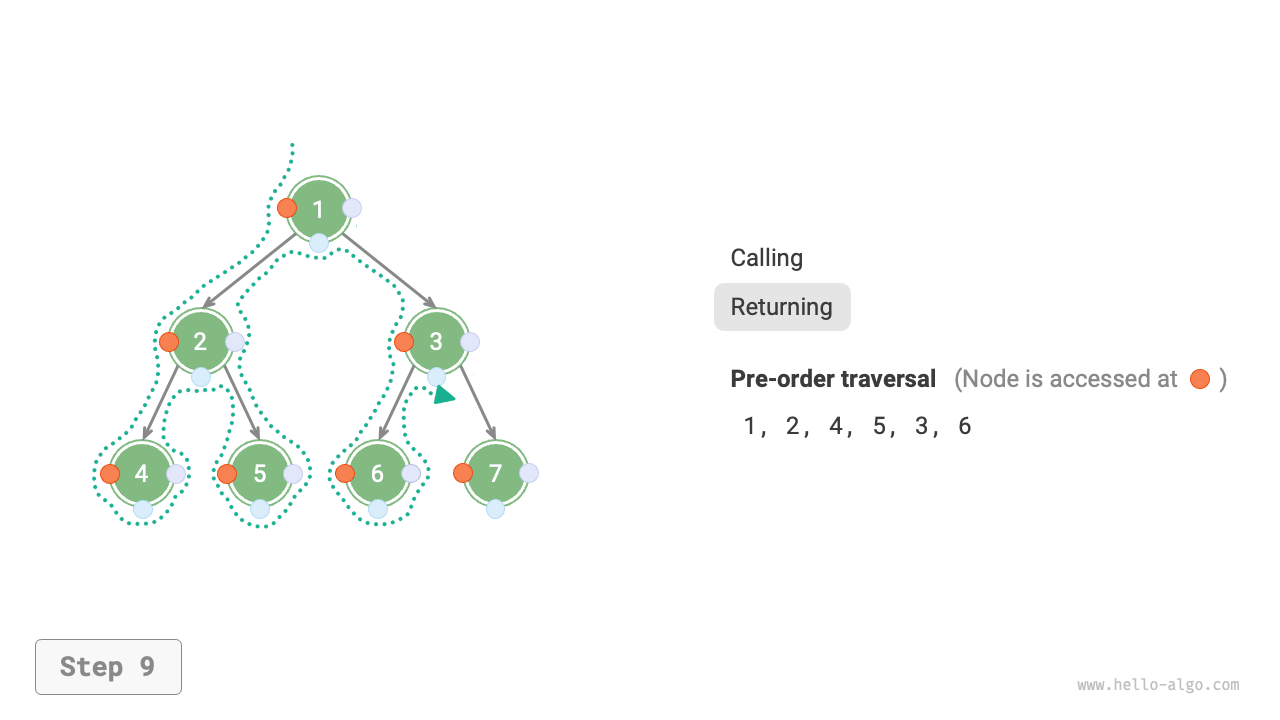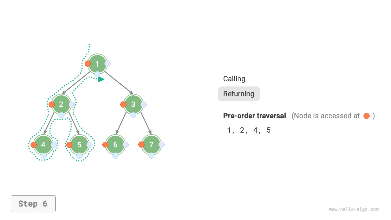 - 「復帰」は関数が戻ることを意味し、現在のノードが完全にアクセスされたことを示します。