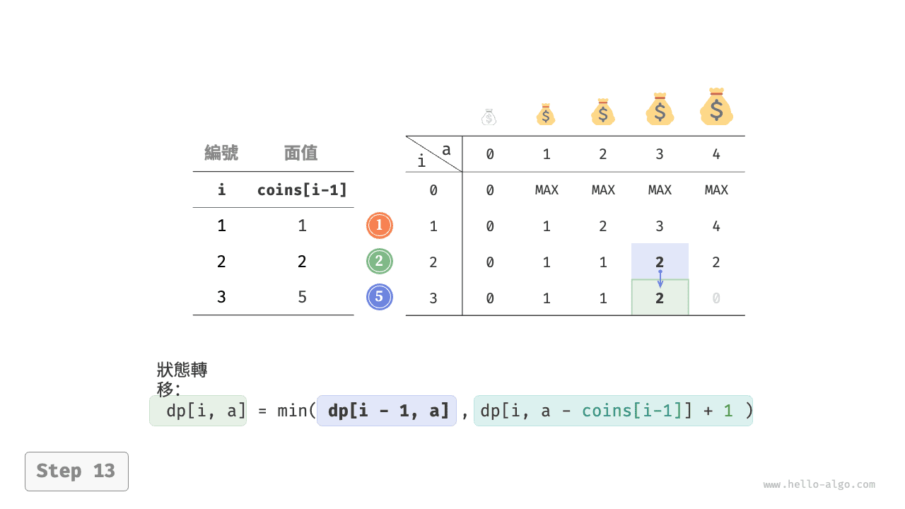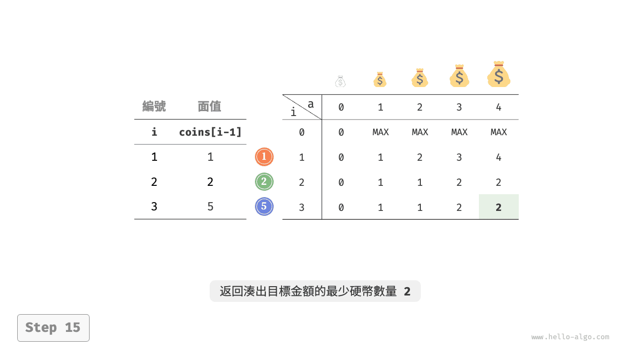 圖 14-26 零錢兌換問題 II 的示例資料