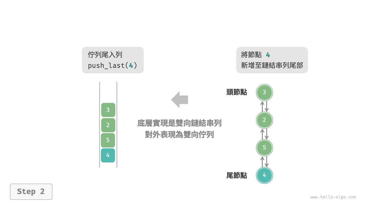 雙向佇列兼具堆疊與佇列的邏輯,因此它可以實現這兩者的所有應用場景,同時提供更高的自由度。