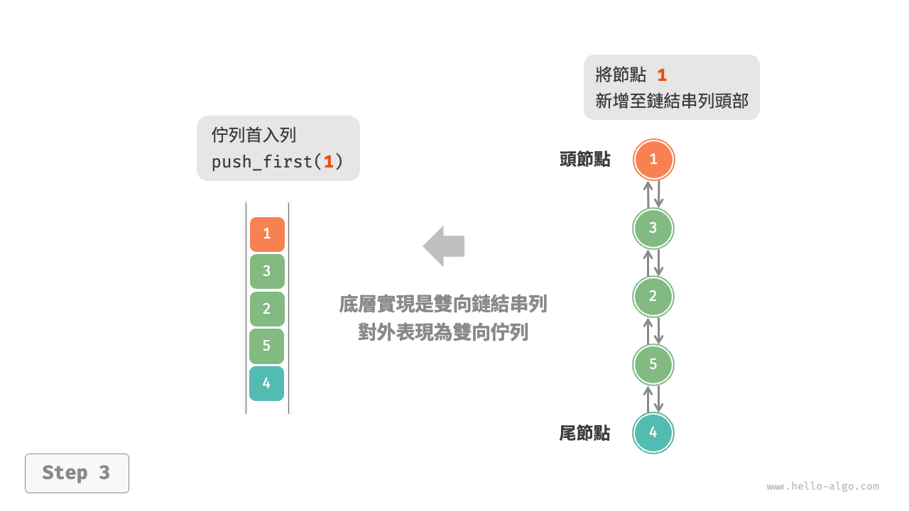 pop_front: int = deq.popleft() # 佇列首元素出列